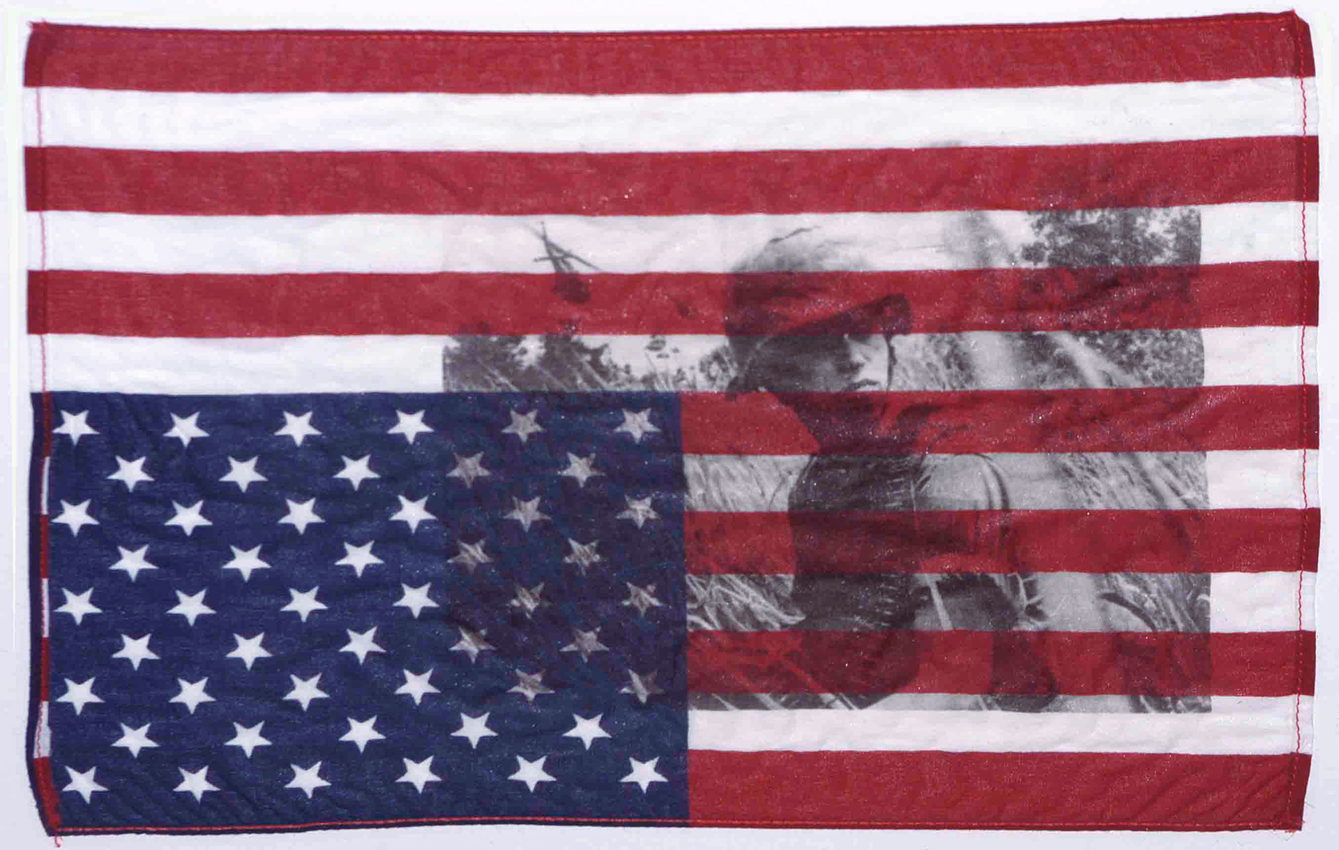 "Flag" American Flag under Distress: Photographic Emulsion/Black and White exposure onto Flag (1999)